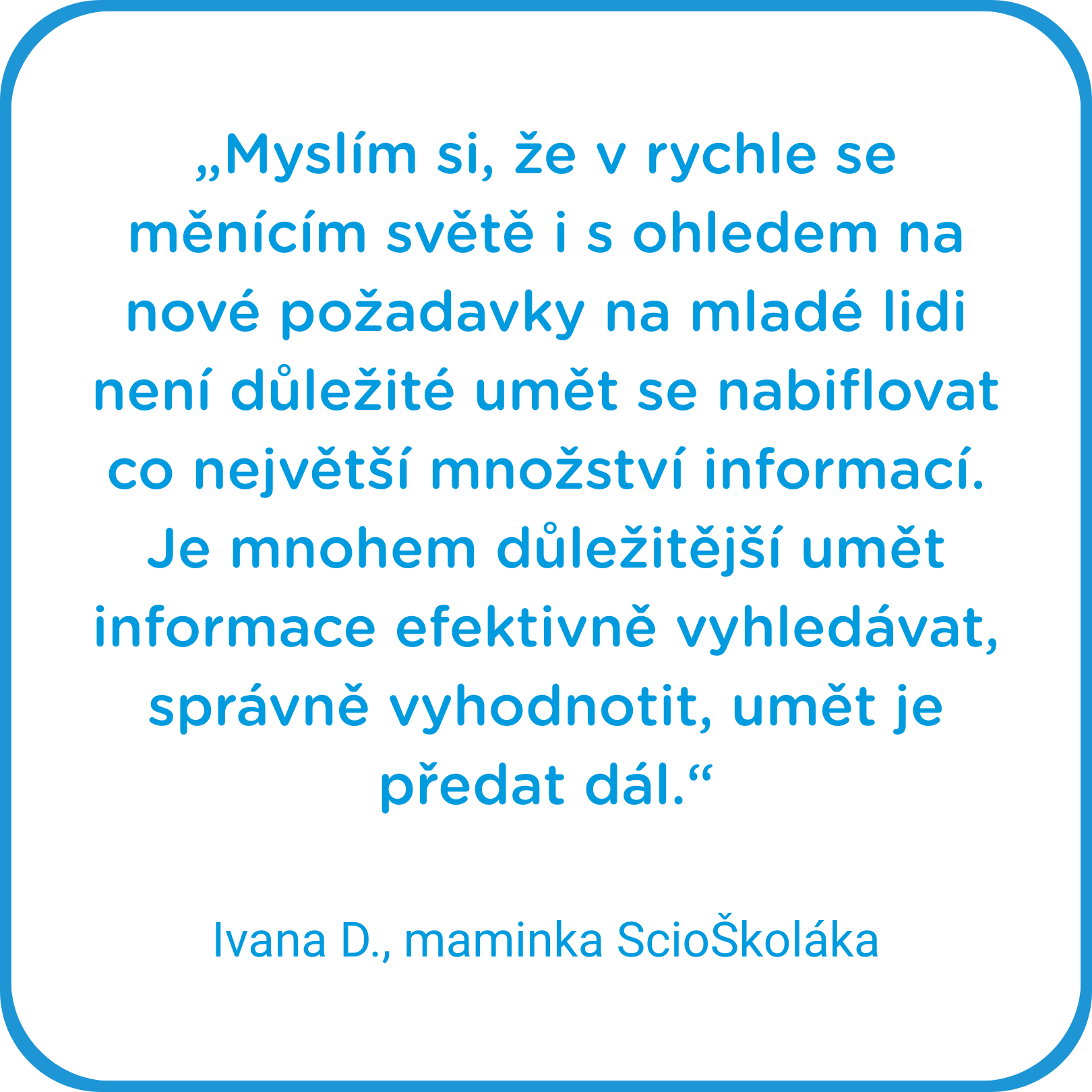 Znalosti se snadno zapomenou. V době, kdy jsou informace dostupné na jedno kliknutí v chytrém telefonu, už memorování poznatků nemá smysl. Učíme děti přemýšlet a informace si ověřovat.